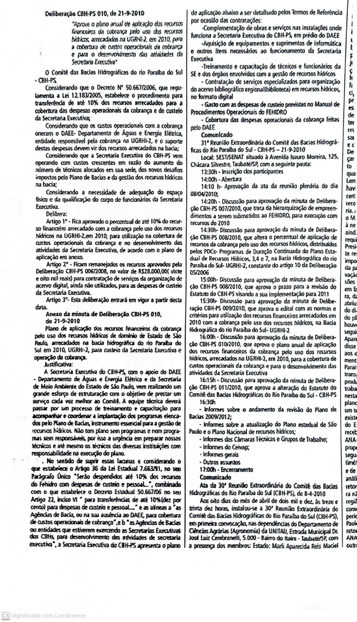 Artigo 2º- Fica decidida a aplicação de no mínimo 20% e no máximo 40% dos recursos alocados à UGRHI-2 pelo FEHIDRO- exercício 2010 para aplicação em Revitalização de Bacias Hidrográficas cujo escopo dos projetos foi definido pela Deliberação CRH Nº 95/2009 alterada pela Deliberação CRH 97/2009.