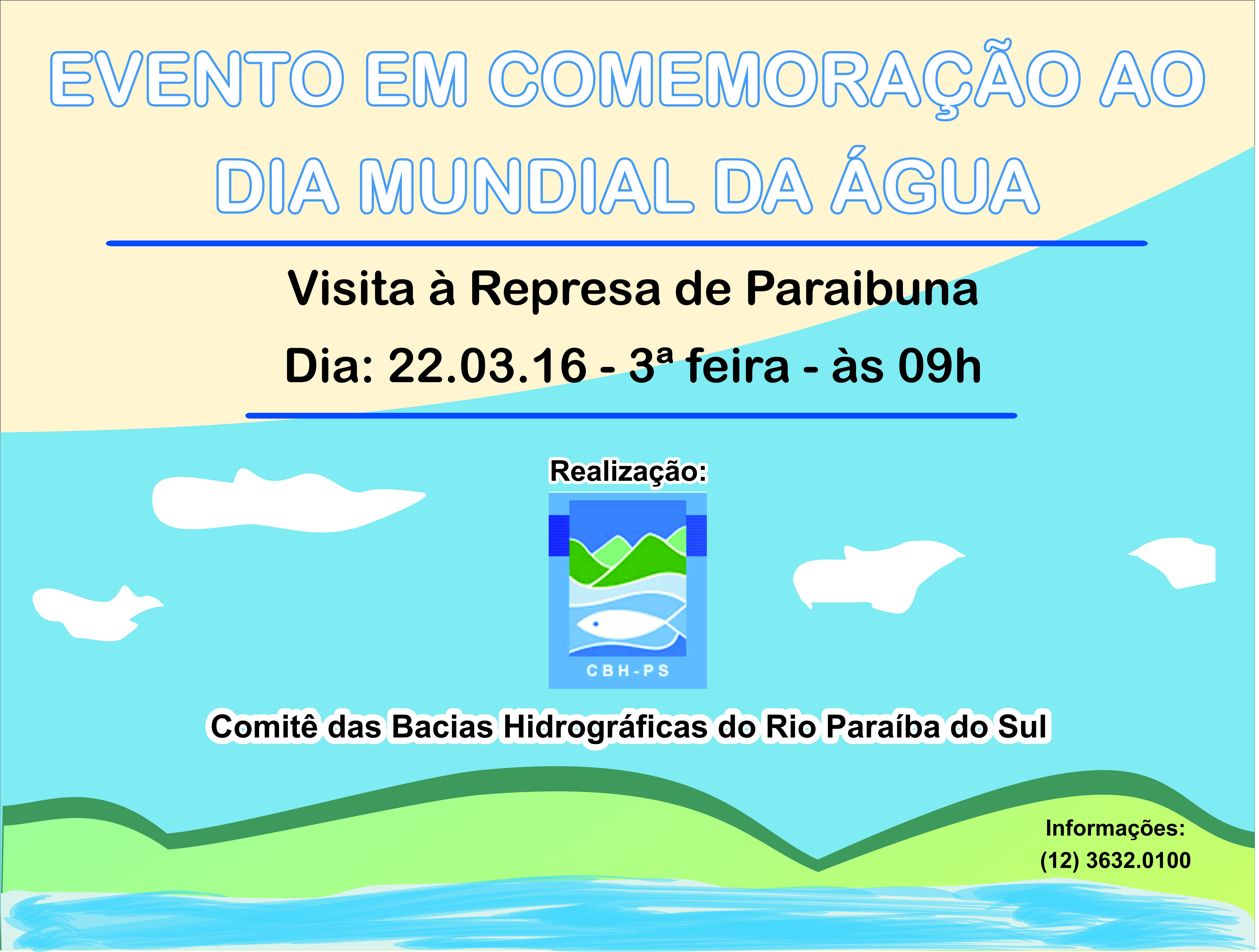 Descrição: Em comemoração ao Dia Mundial da Água, a Diretoria Executiva do CBH-PS, juntamente com a equipe da CESP, estarão recebendo os senhores na sede da Usina Hidrelétrica, em Paraibuna para uma breve palestra e visita a represa local.