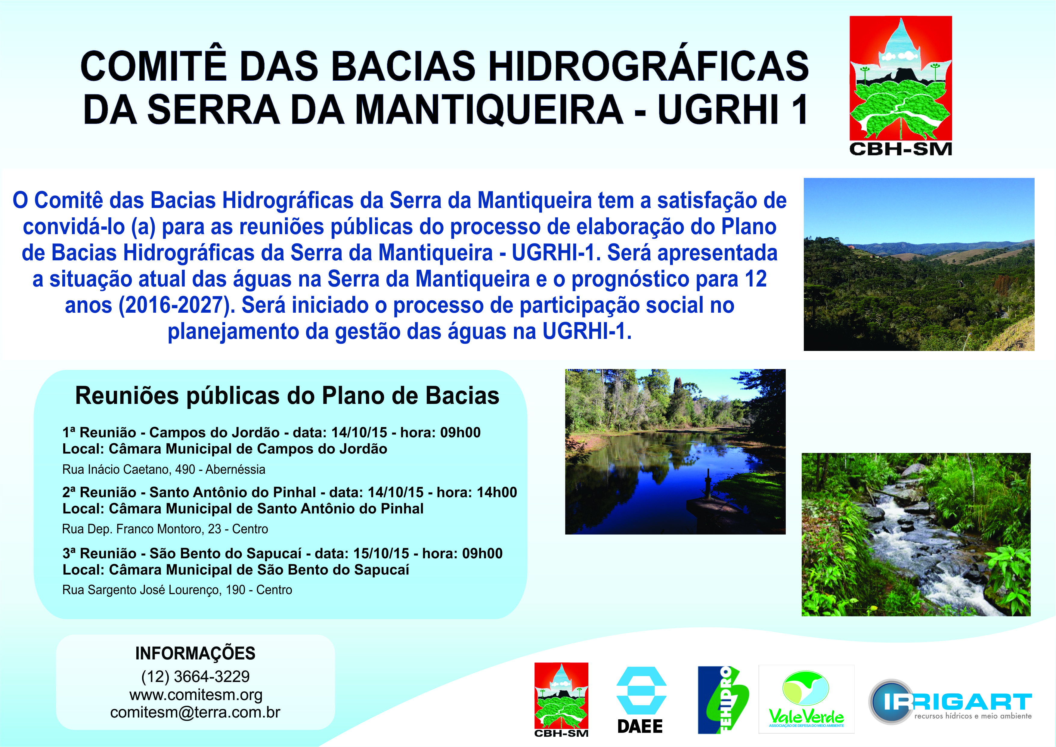 Encaminhamos o convite das Reuniões Públicas sobre a revisão e atualização do Plano de Bacias Hidrográficas da Serra da Mantiqueira.