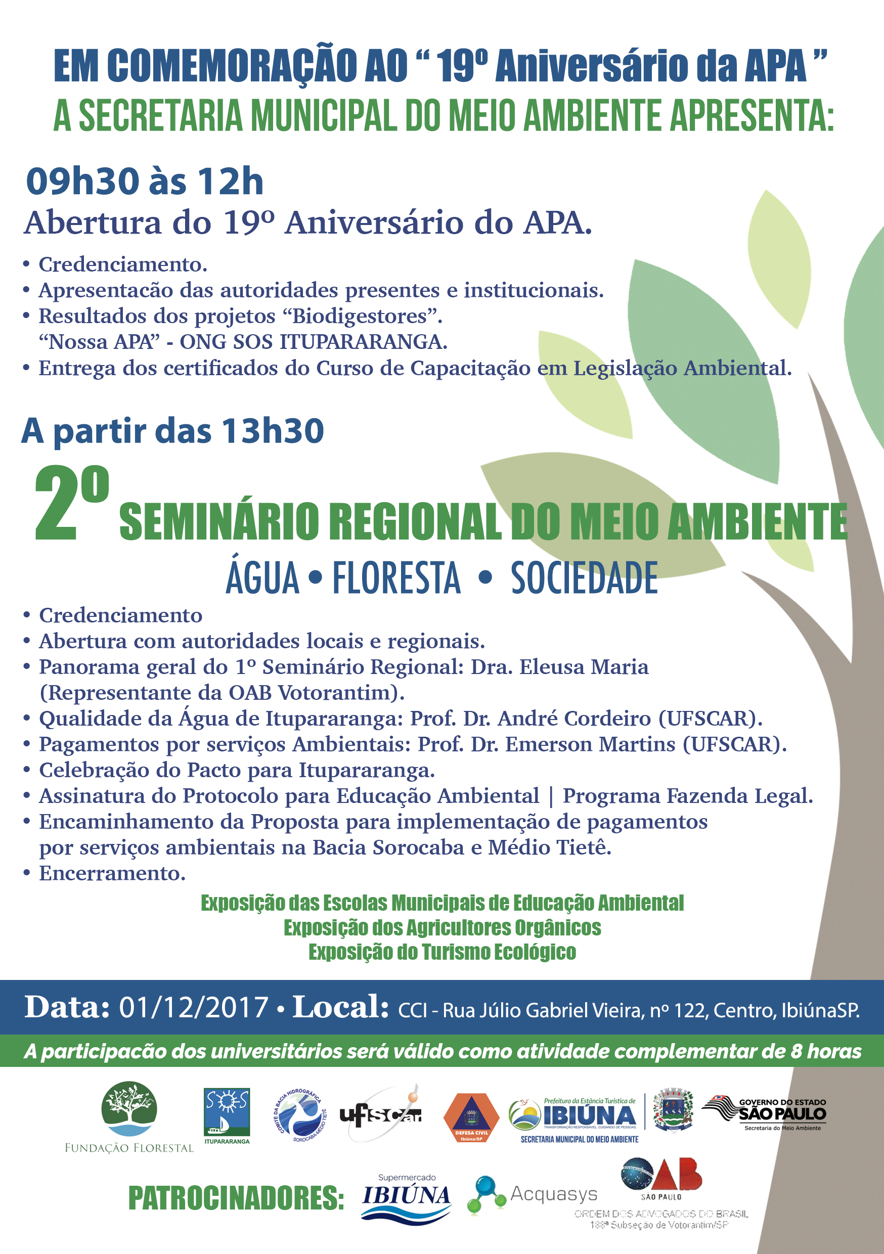 Descrição: 2° SEMINÁRIO REGIONAL DO MEIO AMBIENTE; 19° ANIVERSÁRIO DA APA ITUPARARANGA