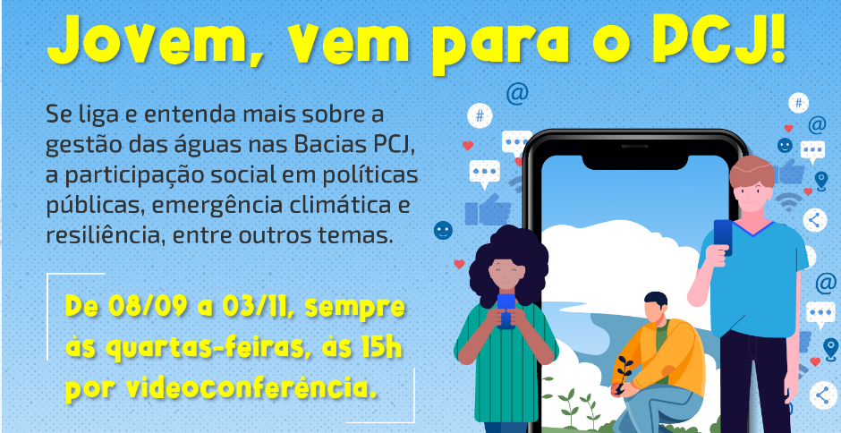 Promovido pelas Câmaras Técnicas de Educação Ambiental (CT-EA) dos Comitês PCJ, o Movimento “Jovem, vem para o PCJ!” tem como objetivo engajar jovens, entre 15 e 29 anos, nas causas relacionadas ao uso da água.