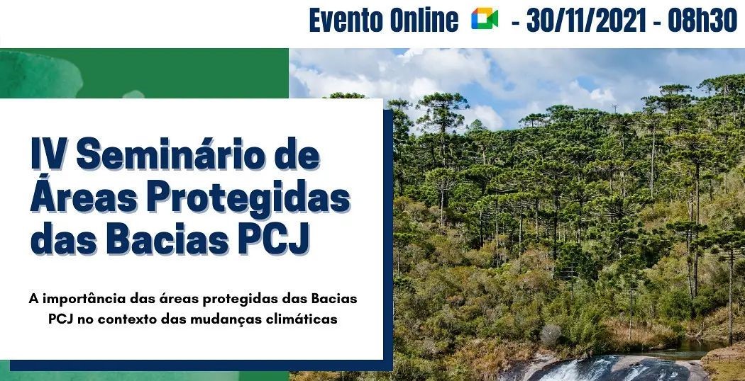 A Câmara Técnica de Conservação e Proteção de Recursos Naturais (CT-RN) dos Comitês PCJ realiza, no dia 30 de novembro, o IV Seminário de Áreas Protegidas das Bacias PCJ, com o tema “A importância das áreas protegidas das Bacias PCJ no contexto das mudanças climáticas”.