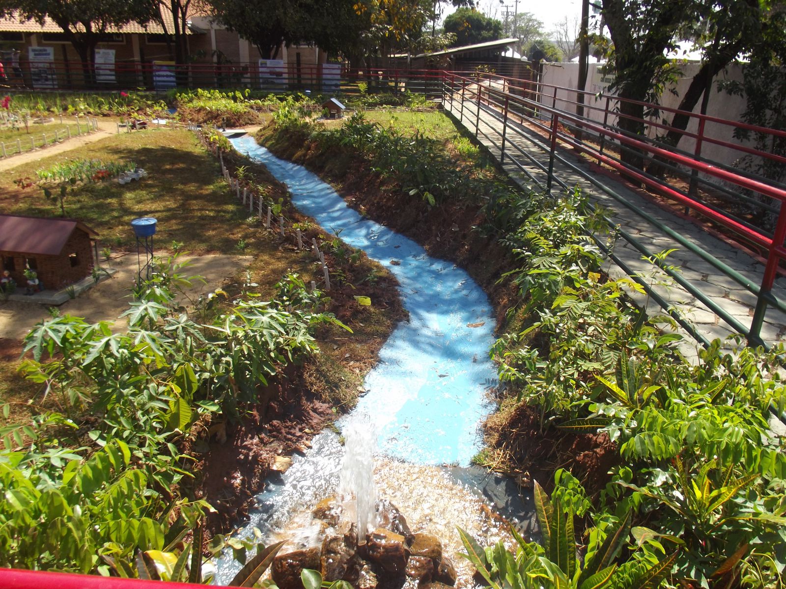 Ela destacou detalhadamente o projeto. “No espaço de 20 m² está formada a área da bacia em escala reduzida. Foram construídas vias rurais e residências rurais, formando as fazendas com agriculturas diversificadas, e o plantio de mudas em áreas de APPs. A microbacia tem sua foz em um reservatório de uma represa hidrelétrica como exemplo o Rio Grande no Município de Colômbia”, explicou.