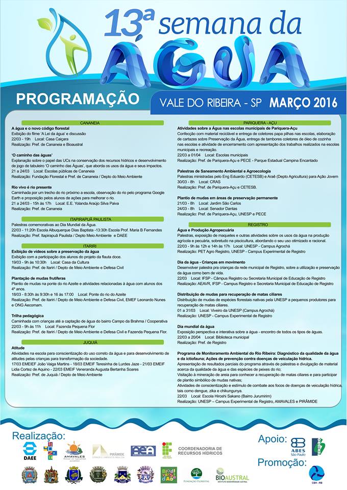 Evento: Semana da Água 2016 (em parceria com a Diretoria de Ensino – Região de Pindamonhangaba).