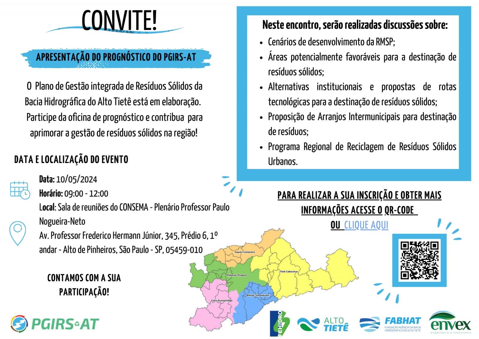 O Plano de Gestão Integrada de Resíduos Sólidos da Bacia Hidrográfica do Alto Tietê está em elaboração. Participe da oficina de prognóstico e contribua para aprimorar a gestão de resíduos sólidos na região!