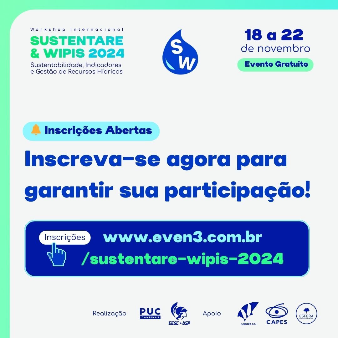 As inscrições podem ser feitas no endereço https://www.even3.com.br/sustentare-wipis-2024/