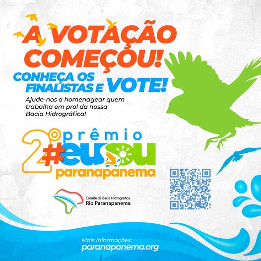 Contagem regressiva iniciada para conhecer as melhores e mais notáveis ações, obras, projetos ou estudos desenvolvidos no âmbito da Bacia Hidrográfica do Rio Paranapanema. A lista das iniciativas finalistas – nas quatro categorias – Poder Público, Usuários da Água, Entidades Civis e Instituições de Ensino, que geram impactos positivos nas águas, foi divulgada e agora é votar! A votação é aberta ao público, por meio do site, e ficará disponível até o dia 18 de novembro.