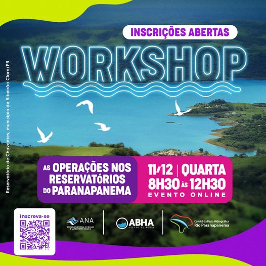 O Comitê do Rio Paranapanema, em parceria com a Agência Nacional de Águas e Saneamento Básico (ANA), promove no dia 11 dezembro, das 8h30 às 12h30, o encontro online: Workshop Regras Operativas dos Reservatórios do Paranapanema
