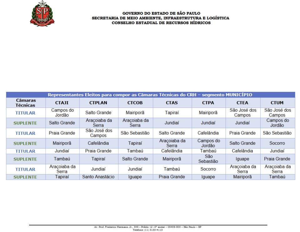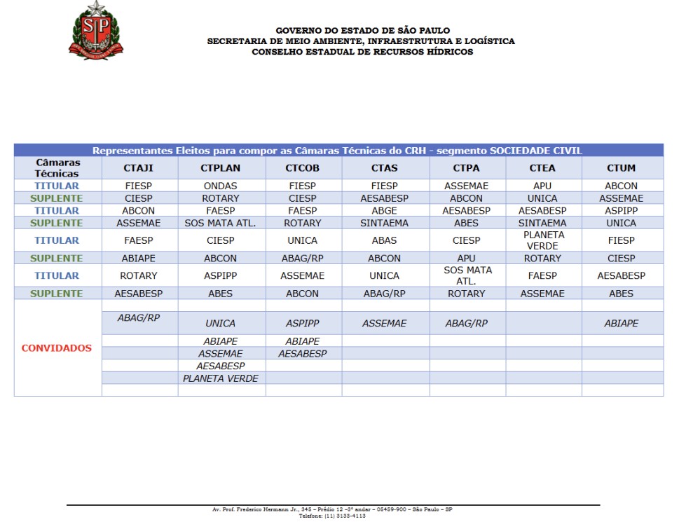 - Câmara Técnica de Proteção das Águas (CTPA)