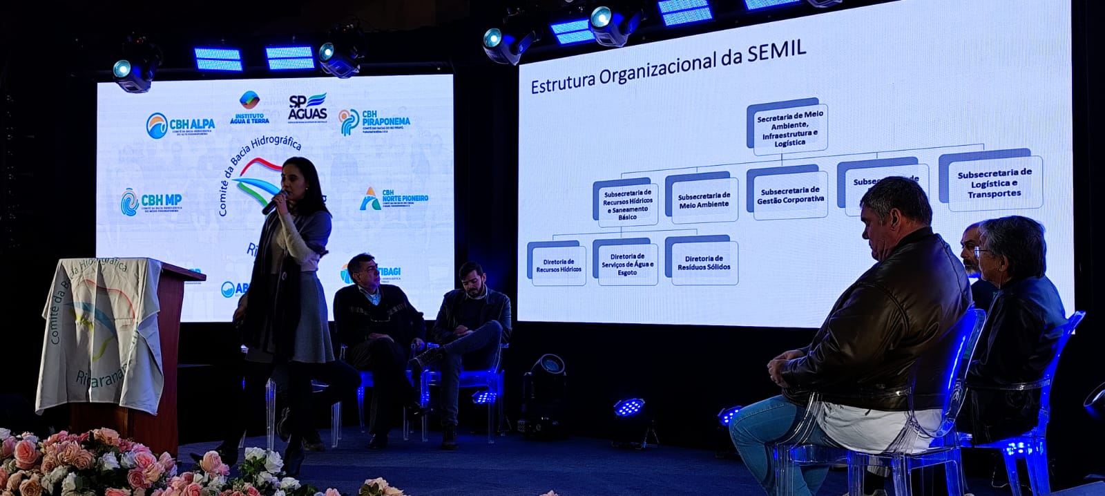 Ainda, a Diretora apresentou a nova estrutura da SEMIL no painel “Planejamento – Integração dos Planos de Recursos Hídricos” e, nessa oportunidade, apresentou um projeto estratégico da DRHi que envolve uma proposta de reestruturação do processo de contratação e elaboração dos PBHs e PERH.
