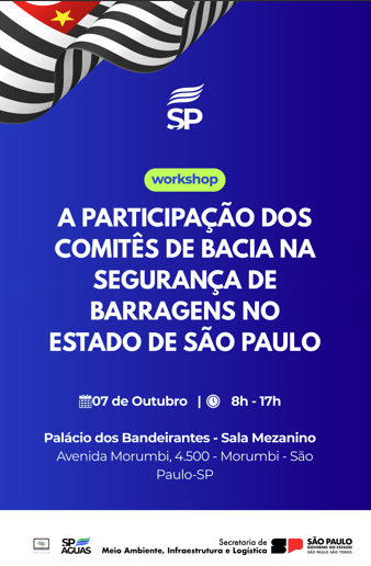 A SP Águas convida a todos para participarem do Workshop: "A Participação dos Comitês de Bacia na Segurança de Barragens no Estado de São Paulo".