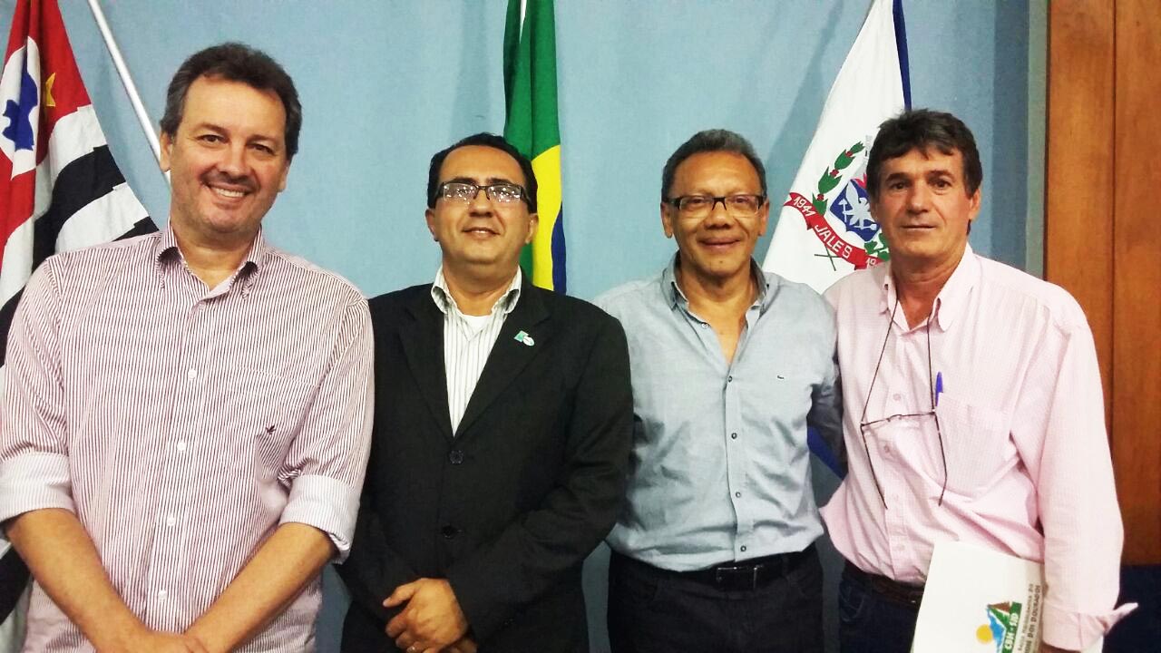 Legenda: (Da esquerda para direita) o Presidente do CBH-SJD, Flávio Prandi Neto; o Vice-Presidente, Jefferson Nascimento de Oliveira; o Secretário executivo, Eli Carvalho Rosa; e o Coordenador da Câmara Técnica de Planejamento e Avaliação, José Roberto Bóis. Fotos: CBH-SJD